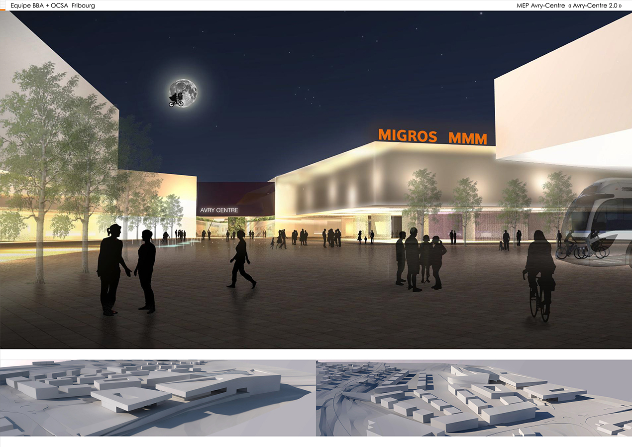 2015-2016 – Concours du nouveau MEP Avry-Centre avec Centre Commercial MMM, quartier mixte, piscine, gare routière et ferroviaire (groupe pluridisciplinaire-pilote).*