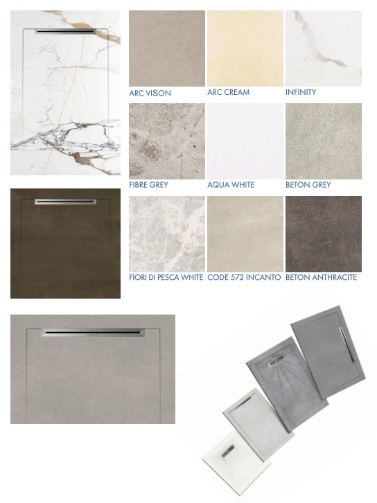 Receveur de douche en grès-cérame (disponible en 4 formats et multitude textures et couleurs)