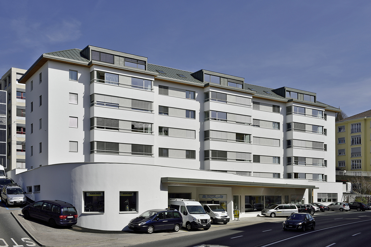 Construction d’un immeuble locatif de 22 logements avec balcon (studios et 3.5 pièces) ainsi que 22 places de parc extérieures (dont 16 couvertes). Des panneaux solaires photovoltaïques seront installés en toiture, avec la mise en place d’une communauté d’autoconsommation. Le chauffage sera alimenté par une pompe à chaleur (PAC). Une récupération d’air à simple flux est prévue pour la production d’eau chaude sanitaire.