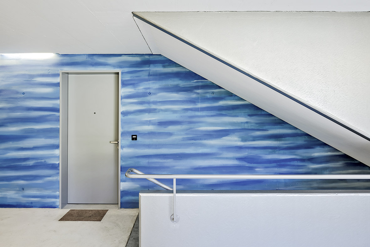 Das vielseitige Wohnangebot setzt sich fort in den drei mittleren, siebengeschossigen Längsbauten, die weitgehend identisch sind. Mehrspännig um eine zentrale Erschliessungsanlage organisiert, sind pro Geschoss bis zu sieben Wohnungen erreichbar. Dadurch wird das geräumige Treppenhaus zu einem wichtigen Begegnungsort. Das abschliessende «Punkthaus» mit einem Kindergarten / Hort und darüber vier Wohngeschossen bietet pro Geschoss bis zu sechs Wohnungszugänge über eine zentrale Erschliessungszone mit einem grosszügigen Treppenauge.