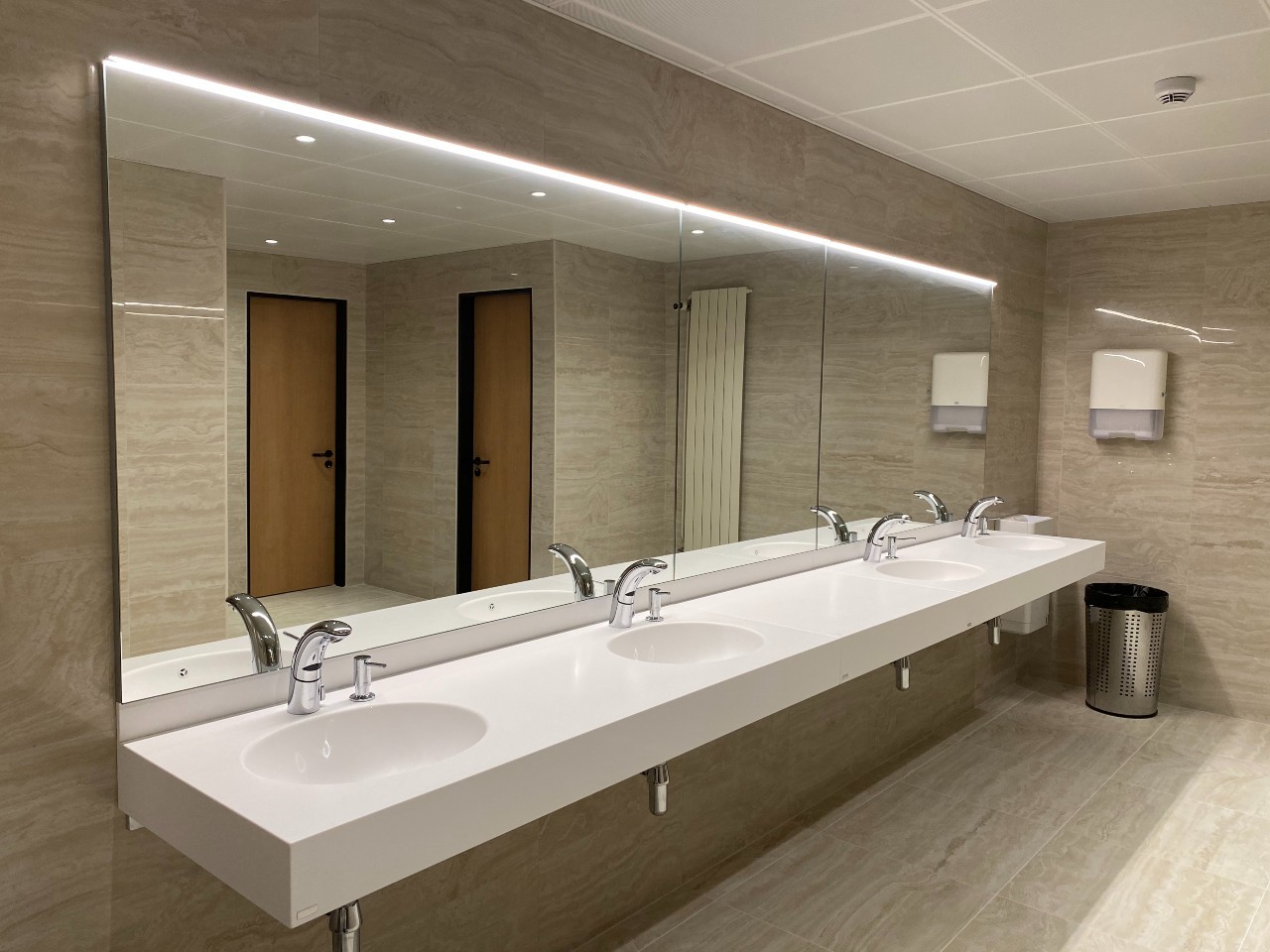 Framo est présent depuis 1973, à Romont dans le canton de Fribourg. Dans notre usine, nous fabriquons des meubles de salles de bains, des armoires de toilette et panneaux miroir ainsi que des armoires murales. Nous transformons également le solid surface (Corian ®) en solutions individuelles. Framo est également le spécialiste des agencements sur mesure pour les bâtiments publics (écoles, crèches, cabinets médicaux, EMS, etc.).