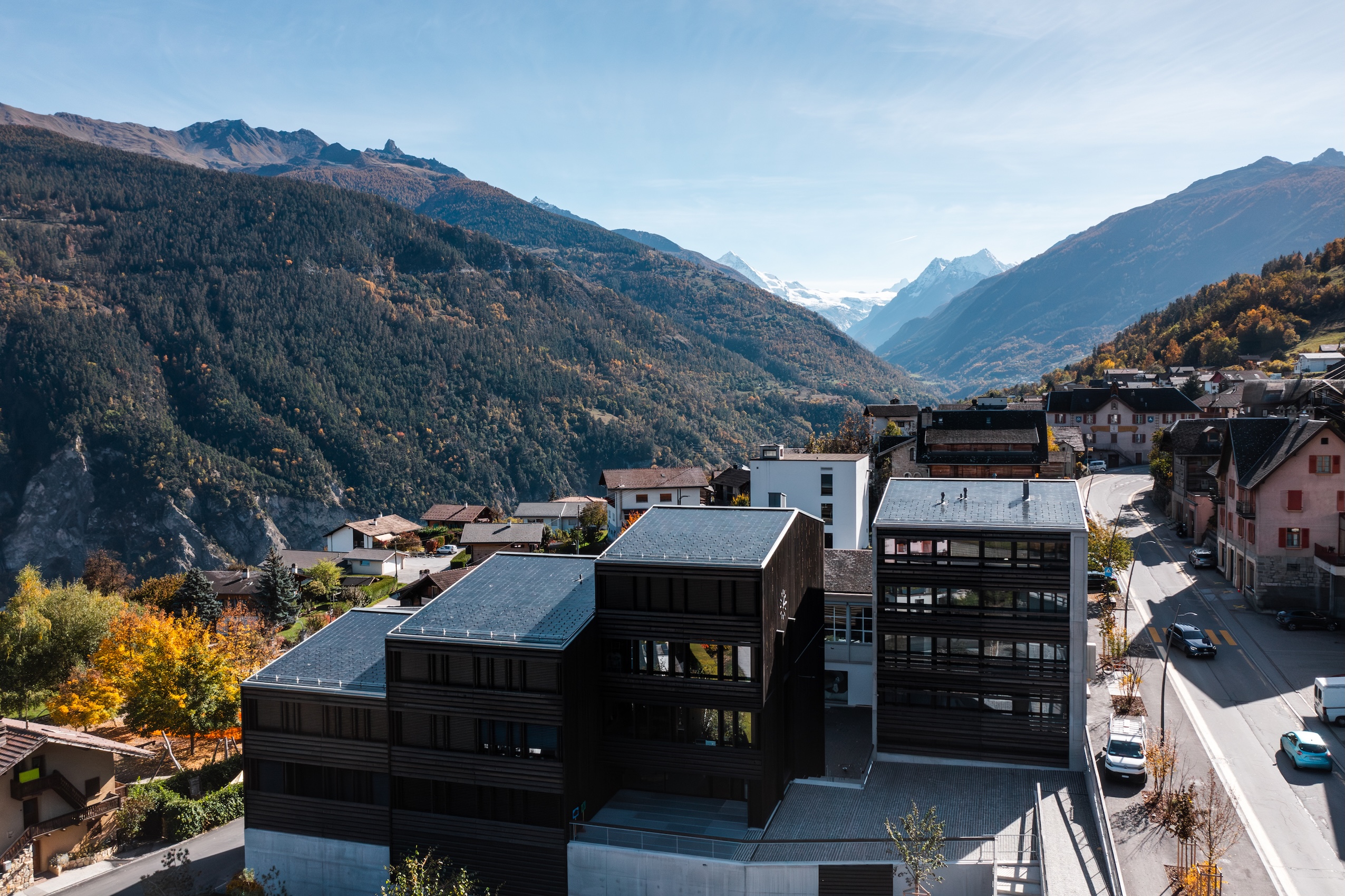 Solaris™ VDiamond Terracotta: Inspiriert von den Terrakotta-Dächern, die emblematisch für das architektonische Erbe der Schweiz sind, fügt sich der Solaris™ VDiamond Terracotta-Ziegel perfekt in traditionelle Landschaften ein. Dank seiner Palette an Terrakottatönen reproduziert er das Aussehen klassischer Dachziegel und bietet gleichzeitig eine leistungsfähige Photovoltaikdeckung.