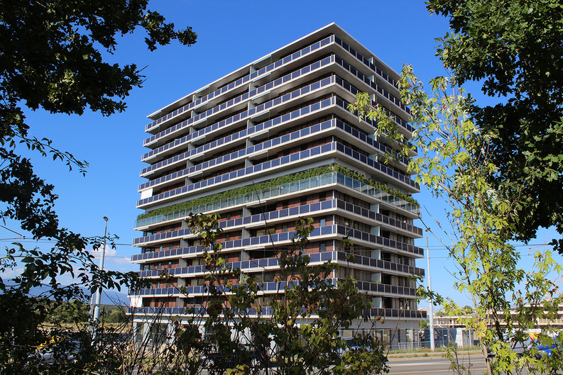 - Construction du bâtiment A14, immeuble de 130 logements dans le Quartier des Vergers à Meyrin, Genève