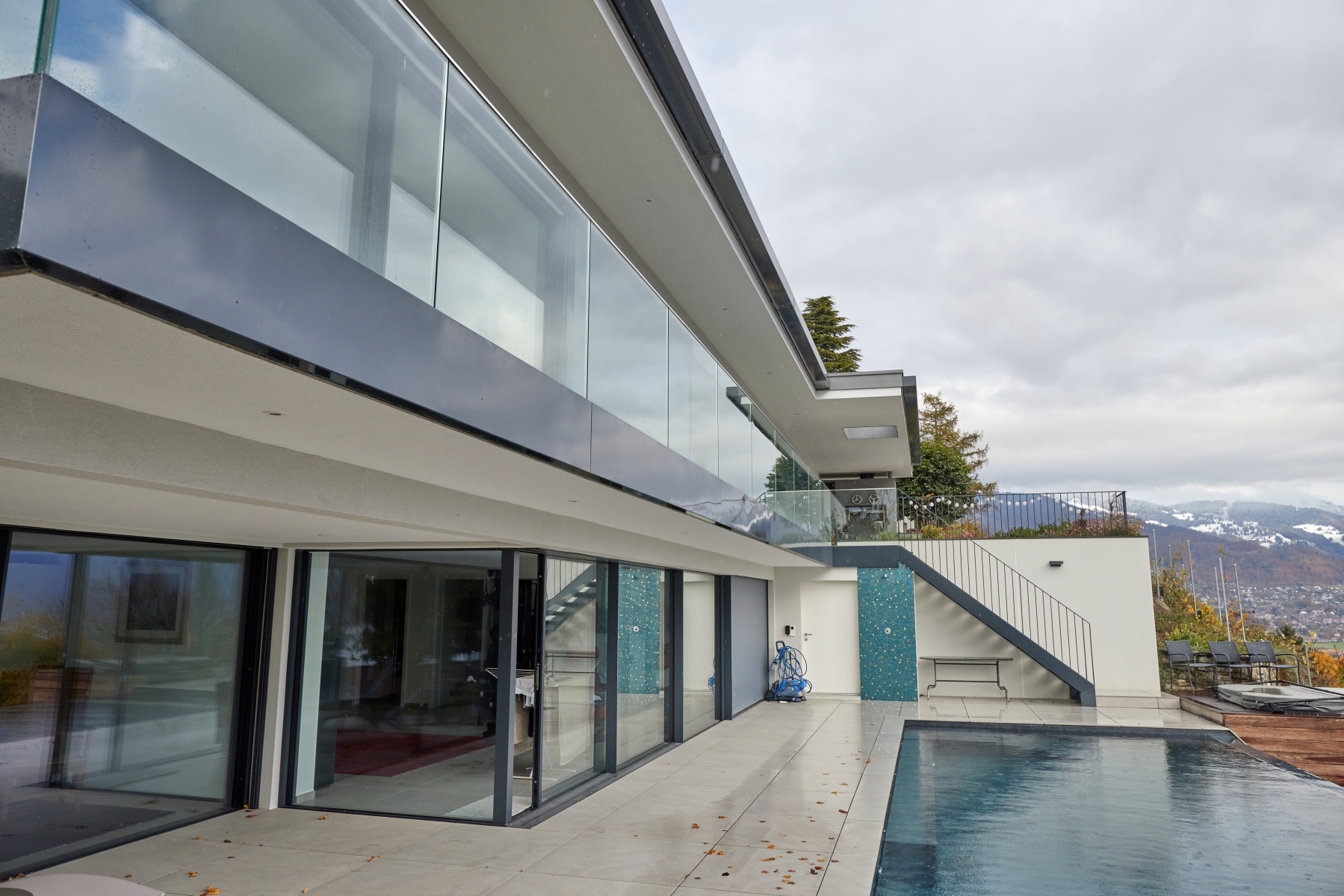 Aménagements intérieurs, piscine, mobilier d'une villa à Hermance Genève, 2002