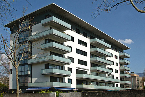 L'ensemble de l'immeuble représente symboliquement une moto.Le Vieux Florissant - (Chemin de Normandie, Genève)