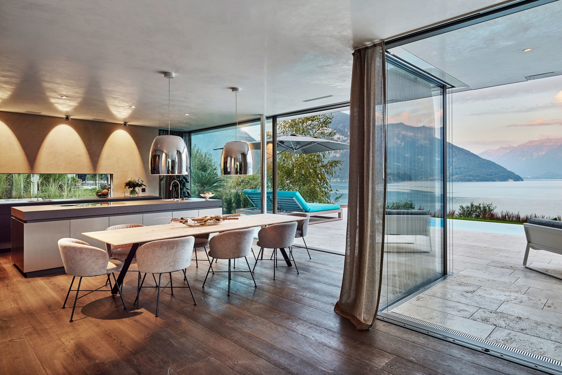 La fenêtre coulissante premium sans cadre de swissFineLine permet des transitions fluides entre l'intérieur et l'extérieur et offre une expérience de pièce illimitée pleine de lumière, d'air et d'atmosphère. Un type particulier d'architecture est créé à partir de la créativité et de la passion.
