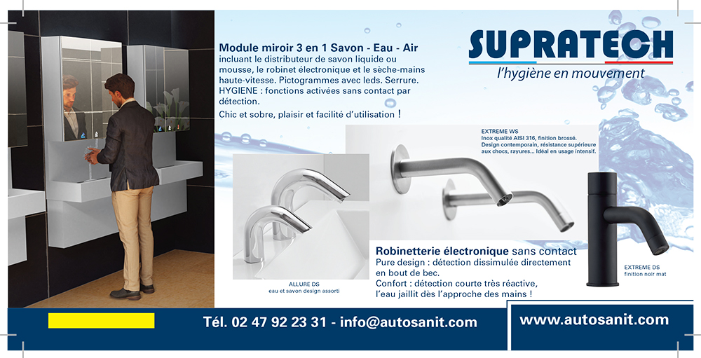 Robinets, distributeurs divers, vaporisateurs, sèche-mains gérés électroniquement mais également des poignées ergonomiques permettant des ouvertures de portes sans contact manuel.