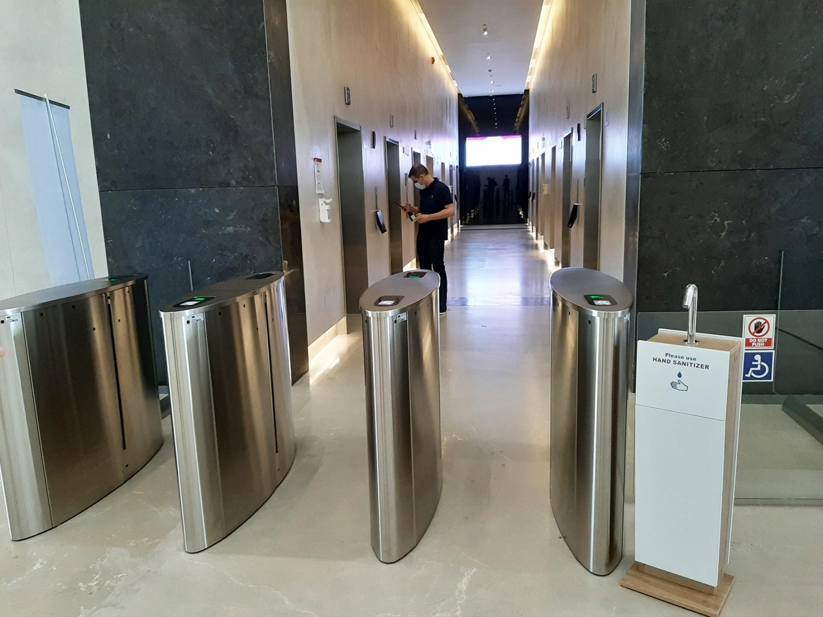 Nos bornes de désinfection automatique mais également nos poignées rallongées permettant l ouverture des portes facilitant ainsi l’accès sans contact.