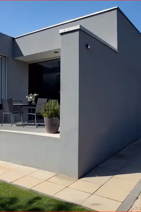 Haut. Construites de manière classique - béton armé pour les murs du sous-sol, murs de façades en briques de terre cuite -, les villas bénéficient d’une isolation périphérique de 16 centimètres partiellement crépie. Certaines parties des villas sont doublées de pierre reconstituée, leur conférant un aspect chaleureux et unique.