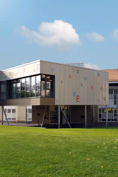 Ceux-ci illustrent en effet parfaitement, par les techniques apparentes et l’expression de leur matérialité, les corps de métier présents sur le site. Comme centre à vocation didactique, le lieu incite donc les apprentis à observer et à comprendre l’environnement construit. Béton, bois ou verre ont été travaillés avec soin et leur design est mis en valeur, comme l’illustre le calepinage du béton de la cage d’escalier. La cohérence architecturale de l’ensemble est assurée à l’extérieur par l’expression des façades où contrecœurs et vitrages sont traités en bandeaux horizontaux estompant le programme multifonctionnel.