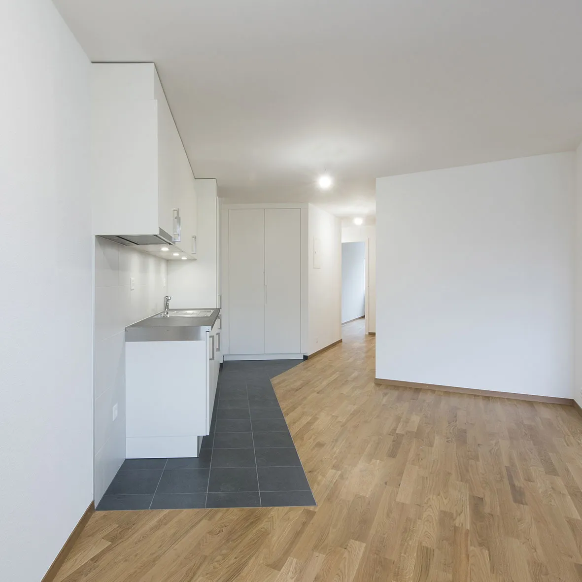 Situé sur la commune de Thônex, le périmètre concerné a fait l’objet dans les années 1950 d’une étude urbanistique singulière où se mêlent barres d’habitation et villas mitoyennes, locaux artisanaux, école et, plus étonnant, le maintien d’une ancienne ferme, dernier repère d’un domaine patricien disparu. Un programme audacieux, largement dénaturé au fil des décennies et des tendances qui, au final, restera inabouti. Témoin emblématique de ce plan original, l’ensemble bâti du chemin de Chapelly est réalisé en 1960 par les architectes François Maurice, Jean Duret et Jean-Pierre Dom. Avec une implantation en forme de crosse, ce long volume homogène apparaît comme un exemple très réussi de la production de logements économiques de l’époque. Sous le gabarit de R + 4 se retrouvent en effet un système constructif préfabriqué, l’affirmation d’un vocabulaire clairement contemporain, des appartements aux typologies rationnelles et un traitement de qualité pour les espaces communs.