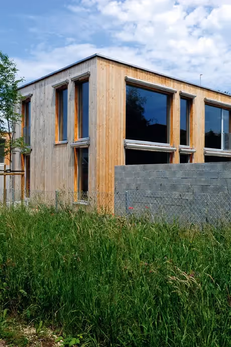 Située sur le canton de Genève, entre l’aéroport et la frontière française, la commune de Meyrin est passée d’un village modeste à une ville à partit des années soixante et poursuit aujourd’hui son développement de manière contrôlée. C’est sur cette commune que ce projet de construction a été envisagé. En effet, une ancienne bâtisse des années cinquante a été démolie au profit de trois villas contiguës réparties sur trois niveaux, dont un sous-sol aménageable.
