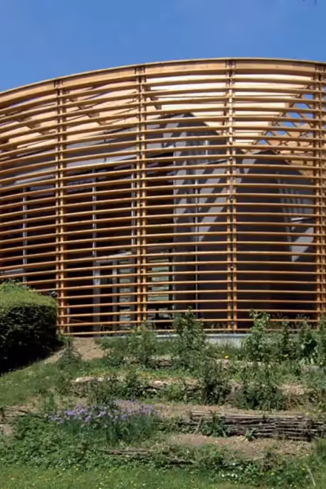 Assise et lumière. Deux idées phares ont dicté la réflexion de l’architecte. D'une part, une organisation spatiale offrant aux résidents une sortie de plain-pied à chaque niveau par des chemins sécurisés latéraux. Ceux-ci, situés à l’arrière du bâtiment, s’inscrivent en parallèle aux courbes de niveau du terrain et conduisent à un banc orienté face à la vue. D’autre part, un aspect monolithique et compact, sécurisant et lumineux marque la forme du bâtiment adossé à la pente. Ses ouvertures, avec un bardage métallique en aluminium, discret mais original, réfléchissent les variations du ciel et des saisons. L’intérieur se distingue par la qualité de sa lumière : baies vitrées dans les espaces communs et baies à double orientation dans les séjours d’unités. Puits de lumière carrés ajourant les plafonds, lesquels dialoguent avec les éclairages artificiels en forme de disques. Écailles d’aluminium sur les façades, en partie visible de l’intérieur, dont les jeux et les reflets changeants rythment les heures et modifient l’aspect du bâtiment. Un ouvrage de caractère, vibrant et vivant de près, et s’intégrant bien de loin.