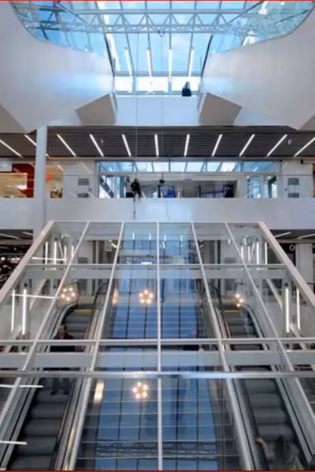 Le bâtiment s’élève ensuite de trois niveaux dont le volume est réservé à des surfaces administratives brutes et modulables en fonction des besoins. Un fitness, un espace de détente, des salles de conférence et un parking souterrain de 133 places de parc complètent ce centre administratif.