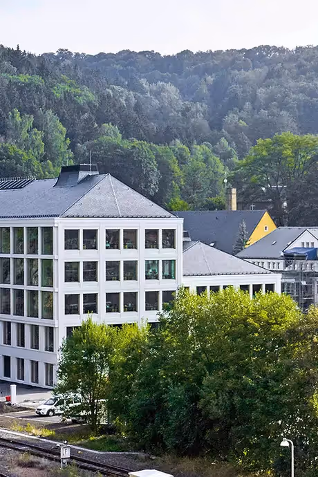 Plus d’un hectare affecté à la production. Le nouveau bâtiment Minergie® comprend 5 niveaux et se trouve accolé à l’existant. Sa structure, réalisée en deux étapes principales, inclut l’extension du bâtiment et l’aménagement affecté à la production de Ruag.