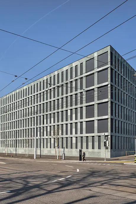 Chef-lieu du canton de Thurgovie, Frauenfeld recense plus de 25 000 habitants et a pour originalité d’être à la fois une région métropolitaine dynamique et un havre de paix proche de la nature. La zone industrielle Steinmühle se situe au Nord de la ville, à une minute à peine de l’accès autoroutier Frauenfeld-Est. Le nom «Steinmühle» évoque les vrombissants moulins à pierre qui, jusque dans les années soixante, cassaient le grain pour l’amener à la taille correcte, tout cela dans le but de produire plusieurs variétés de papier abrasif. L’immeuble commercial dont il est question ici se situe à la Breitenstrasse 16 b. Jusqu’à la mi-2016, il ne comptait qu’un sous-sol et un rez-de-chaussée. En 2017, HRS Real Estate AG a entrepris sa transformation, le dotant de quatre étages supplémentaires.