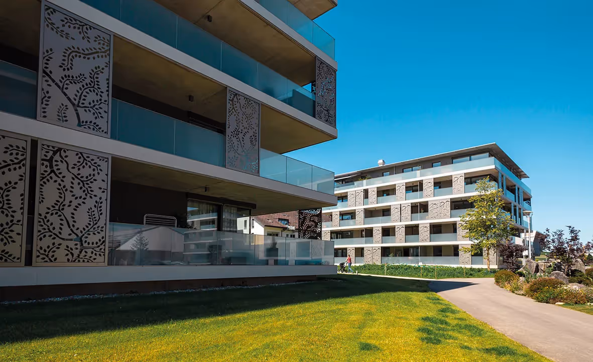 Un vaste parc sert d’écrin aux diverses constructions, nouvelles ou préexistantes. Le projet, subdivisé en plusieurs volets, met en scène un savant jeu de façades. Nichés au cœur de la parcelle, six nouveaux bâtiments de 164 logements bénéficient de généreuses surfaces vitrées. Ils sont organisés au sein d’un parc, comme le soulignent leurs noms évocateurs: Bruyère, Bosquet, Prairie, Verger, Orée et Alpage. Le long de la rue de Vevey, trois nouveaux immeubles avec un rez-de-chaussée commercial ont été baptisés : Acacias, Cèdre et Hêtre. Le site comprend également des bâtiments de l’ancien arsenal militaire: un édifice longitudinal implanté entre les deux zones des nouveaux immeubles qui a été divisé en deux bâtiments et qui accueille des appartements, des lofts et quelques commerces. Deux constructions préexistantes, L’Hongrin et Le Chandon, sont ancrées sur la rue de Vevey.