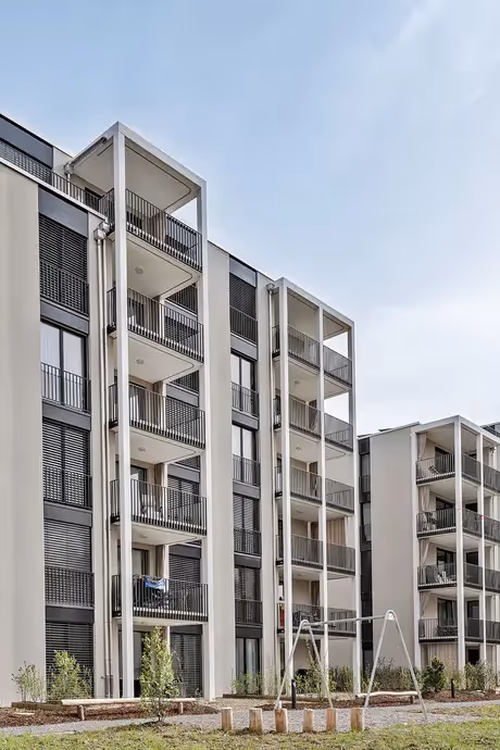 Les appartements, pour la plupart traversants, se prolongent sur de grands balcons filants à garde-corps en verre et cloisons de séparation translucides. Par l’aménagement du patio et d’un cheminement semi-public à travers le rez-de-chaussée, le centre du bâtiment devient un espace de rencontre convivial.