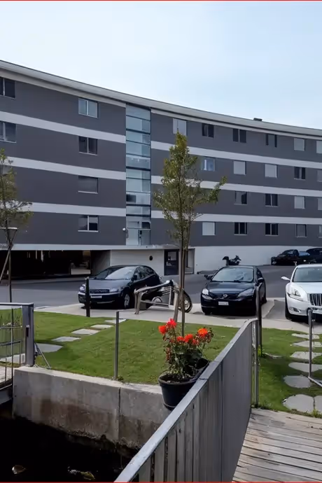 Sur cette parcelle de 5 963 mètres carrés, trois bâtiments de deux étages sur rez sont venus s’implanter créant un U. Chaque bâtiment propose cinq logements variant entre 2,5 pièces jusqu’à des 6,5 pièces dont trois appartements sont en duplex. Dix-neuf garages-boxes ont été intégrés au coeur de ce nouveau quartier d’habitation. Leur toiture est végétalisée afin de se fondre au maximum dans l’environnement alentour et diminuer ainsi l’impact visuel pour les habitants. Dix-neuf places de parc extérieures également sont disponibles au centre de ce lotissement.