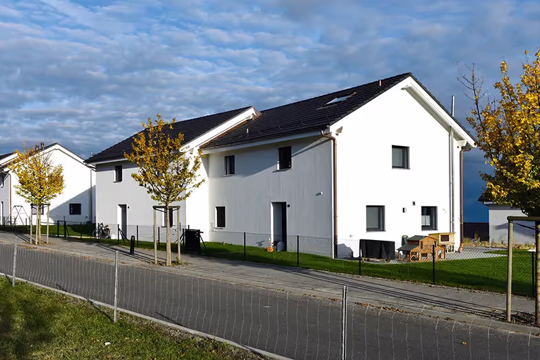 Nature préservée proche des agglomérations. Le projet fait partie d’un plan de quartier global qui affiche la volonté communale de concilier respect de l’environnement et développement. La parcelle se trouve sur d’anciens terrains agricoles. Au niveau technique, des sondages préparatoires effectués en 2010 durant la belle saison n’avaient pas permis de déceler l’humidité du terrain. Des voies d’eau engendrées par des canalisations datant de l’époque où les terres étaient exploitées ont dû être captées et traitées, puis conduites vers un bassin de rétention de 90 m3. Le terrain, une fois stabilisé par cet assainissement a pu être construit.
