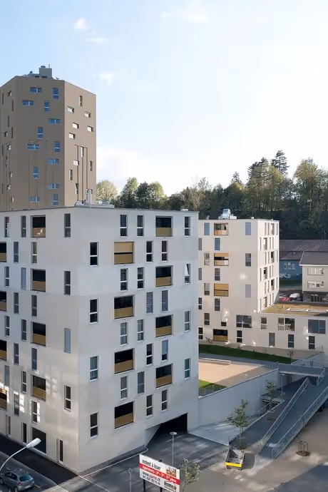 Le PPA lié à la parcelle imposait des volumes et des limites d’implantation strictes. Orientées plein sud, les maisons bénéficient d’une vue dégagée sur le lac Léman et les Alpes. Le centre de la ville de Vevey à l’est se trouve à proximité, tandis qu’à l’ouest de la parcelle commencent les vignes en terrasses de Lavaux.