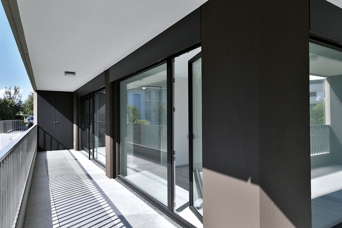 La volonté des concepteurs était d’offrir des balcons qui ceinturent le bâtiment. Hormis les studios, tous les logements bénéficient d’un accès extérieur sur deux côtés de leur logement. Cet avantage est conforté par de très larges ouvertures vitrées sur les balcons. Pour mieux s’intégrer au quartier résidentiel, la hauteur du bâtiment – à toit plat – a été limitée.