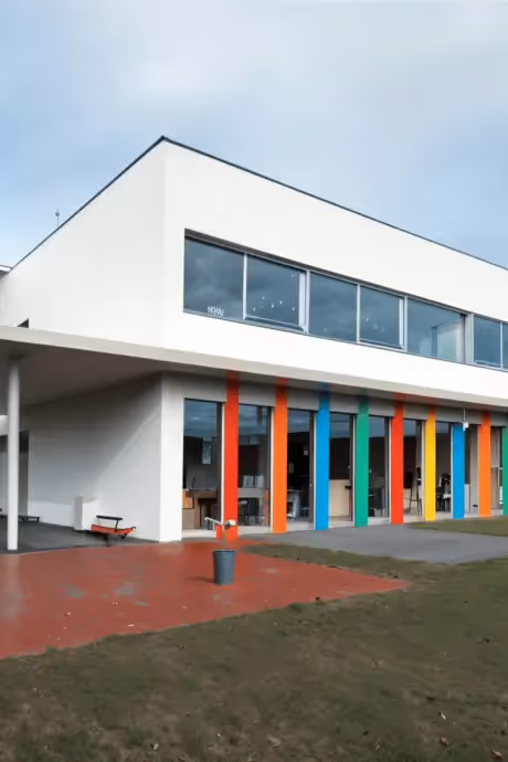 The new building, which was designed by renowned Basel-based architecture office Herzog & de Meuron, combines functionality and aesthetics in an almost perfect way. The upper part of the building consists of two hall structures, positioned on top of each other and projecting outwards over the street to varying extents. The ground floor is predominantly glazed to achieve spatial transparency as well as the intended opening of the hall complex and a dynamisation of public life.