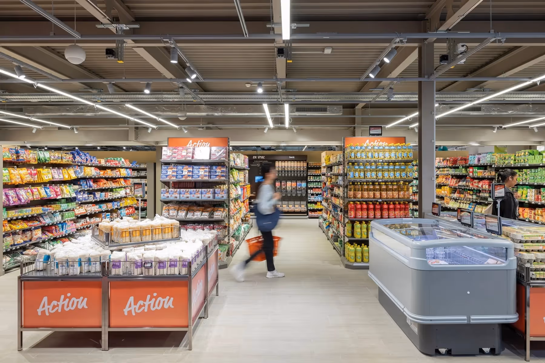 À cela se sont ajoutés le désamiantage, le déplombage et l’élimination des matériaux contenant des HAP et HBCD. Implenia Suisse SA a agi en tant qu’entreprise totale dans un contexte urbain dense, en site semi-occupé (voisinage au-dessus du magasin) et selon un planning court. Grâce aux méthodes de lean construction, Implenia a livré le magasin dans les délais et en assurant de très bonnes conditions aux équipes Migros Genève.