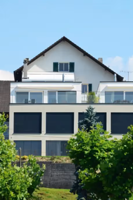 This residential complex offers a higher housing density than the older parts of Neualtwil. The first stage provides eight five-storey apartment buildings with a total of 101 two-and-a-half-room to five-and-a-half-room owner-occupied flats. With ground plans featuring many corners and oblique angles, the buildings are spread along Grundweg, which slopes gently down towards the south-west. Above this, the houses on both the hillside and the valley side are being developed.