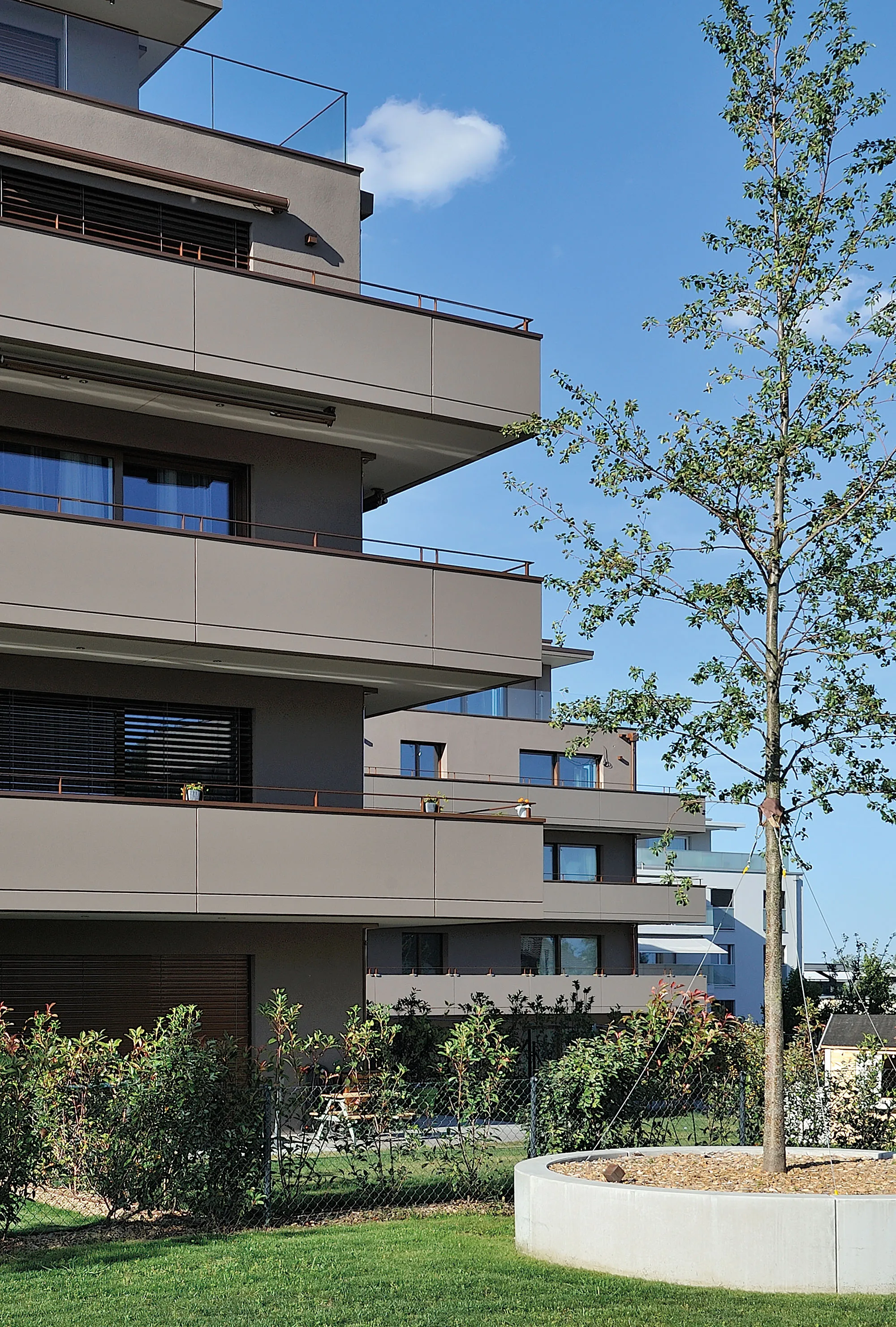 Sur les sept immeubles de Nouvelle Terre, trois d’entre eux sont de taille moyenne, quatre de plus grande envergure. Les logements, sur quatre niveaux plus attique, lumineux et calmes, vont du studio au 4.5 pièces. Dans l’immeuble situé à l’entrée du quartier, un tea-room et une garderie complètent le projet. Un parking souterrain commun – 150 places dont 20 places motos – dessert l’ensemble de la résidence. Des possibilités de recharge pour les véhicules électriques. Le sous-sol comprend aussi les caves, des locaux vélos/poussettes et des locaux techniques.