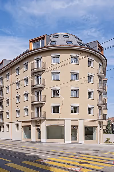 Conçu dès 2019, le quartier de Petit-Bâle Nord a été mis en œuvre de 2021 à 2022, avec une structure en béton armé et une isolation en laine de roche. Parquet dans les chambres, carrelage dans les autres pièces où il forme un revêtement continu qui s’étend des espaces de vie jusque dans les salles d’eau, les terrasses ou les loggias. La conception des immeubles s’inscrit dans le respect des normes énergétiques en vigueur pour l’obtention de la labellisation Minergie®. Les fenêtres en PVC/ métal sont équipées de triple vitrage, le monobloc de ventilation récupère l’énergie pour la production d’eau chaude sanitaire et des panneaux photovoltaïques installés en toiture complètent l’apport en énergie.