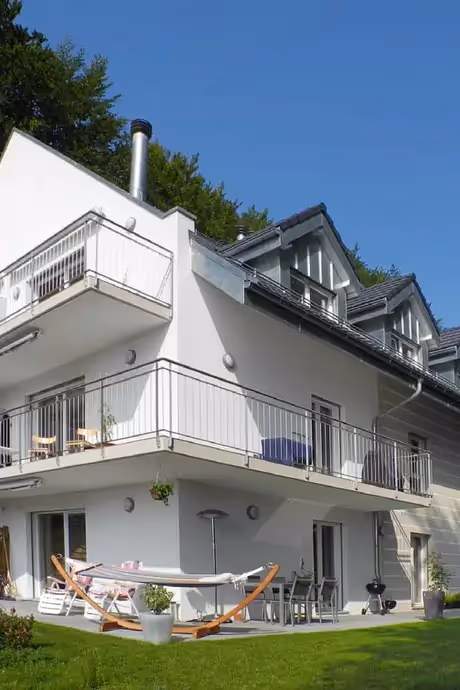 Des logements généreux sur un ou deux niveaux. Dans un quartier résidentiel de Mies, entre deux chênes centenaires, un bâtiment de neuf appartements voué à de la vente en PPE a été édifié. Proche du centre du village et à 200 mètres de la maison de commune, le projet comprend deux niveaux sur rez avec pour particularité de proposer également un sur-comble, accessible mais non-habitable et un garage privatif en sous-sol.