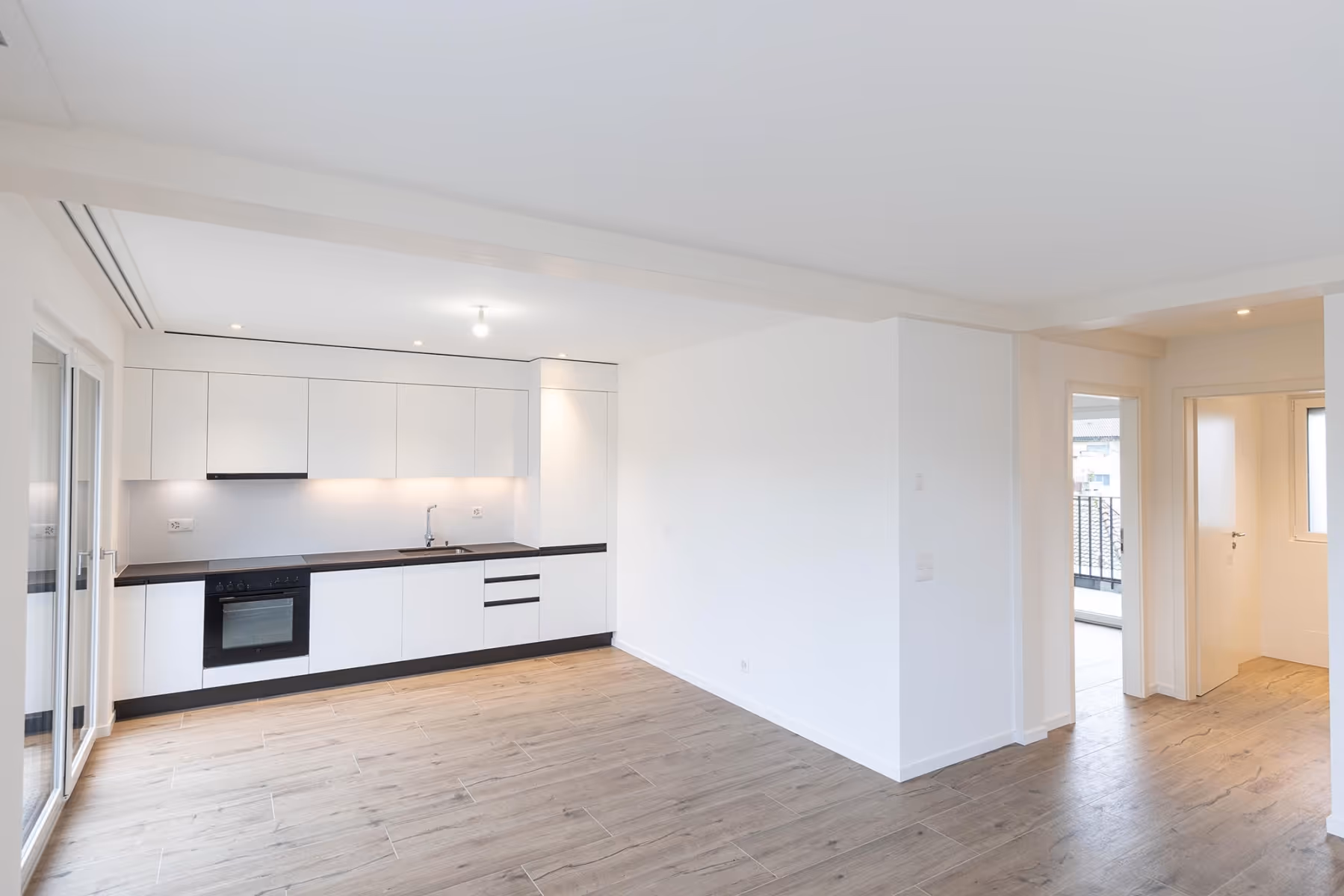 Exécutés par l’Entreprise Totale SD Construction Lausanne SA, les travaux de surélévation se sont déroulés en 2021, sans que les locataires des niveaux inférieurs n’aient dû quitter leur domicile. Aux inévitables contraintes liées aux travaux en site habité se sont joints les défis organisationnels d’un chantier aux accès difficiles et aux espaces de dégagement restreints. Réalisé avec une ossature en bois sur une dalle renforcée par la pose de profils HEA et de lames de carbone, le niveau sommital est couvert d’une toiture végétalisée où ont été installés des panneaux photovoltaïques. De larges surfaces vitrées aux cadres PVC/métal offrent aux nouveaux logements de larges dégagements sur les environs. Le bâtiment existant a également été remis à neuf, bénéficiant non seulement d’une nouvelle enveloppe performante, mais également de nouveaux stores à rouleaux, de fenêtres PVC/métal également et de stores bannes. Les balcons ont ainsi retrouvé une nouvelle jeunesse, améliorés par l’insertion de nouvelles séparations, la pose de résine au sol et la mise en conformité des balustrades. Les installations techniques ont aussi été modifiées par l’installation d’une nouvelle chaudière à gaz et la création de nouvelles introductions pour l’eau, l’électricité et le gaz, tout ceci en veillant à maintenir les accès nécessaires pour les locataires comme pour les voisins du site. Malgré la pénurie des matériaux et les restrictions dues au COVID, les délais ont été respectés.