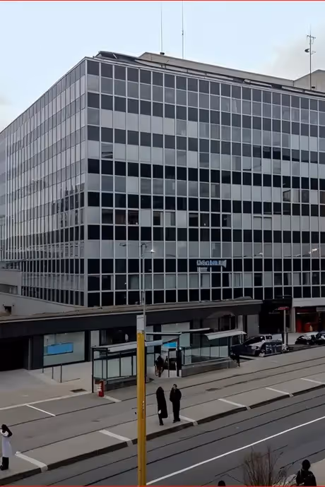 Visible de loin, cet hexagone irrégulier, sur un socle allongé, marque le site d’exposition, sans le dominer, et donne à distance une représentation urbaine moderne de Berne. Ce bâtiment de 55 mètres de haut et de 13 étages doté d’une double façade vitrée est le premier construit dans la capitale depuis près de 50 ans. Transparence, réflexion et structure vivante définissent les façades de PostFinance. Le maître d’ouvrage souhaitait un cadre sobre et simple, mais agréable pour les employés ainsi qu’une grande efficacité énergétique et une construction durable.
