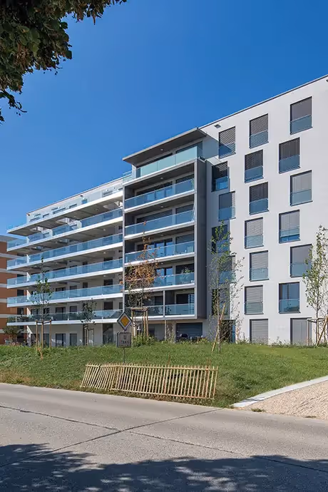 Der Winzerpark umfasst fünf Neubauten mit insgesamt 60 Einheiten für Wohnen, eine Autoeinstellhalle und die Sanierung der Villa. Die 2½-, 3½- und 4½-Zimmer-Wohnungen sind hindernisfrei und haben eigene Balkone oder Loggias mit Aussicht in die Weite und in den Park.