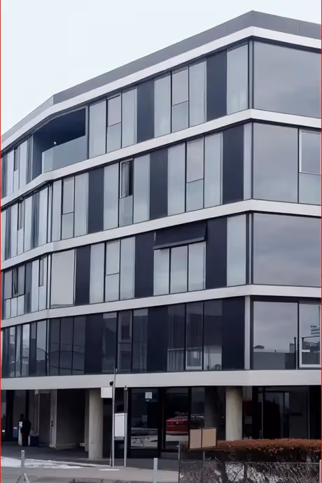 Die langgezogene Form entlang der Autobahn prägt die Architektur des vierstöckigen Neubaus, der sich im Westen in Richtung des Quartiers Schönberg Ost öffnet. Seitens der Autobahn weist die 250 Meter lange und 22 Meter breite Liegenschaft eine gerade Fassade ohne Ausstülpungen auf. Die Fenster unterschiedlicher Grösse sind so angeordnet, dass eine dynamisch- rhythmische Fläche entsteht.